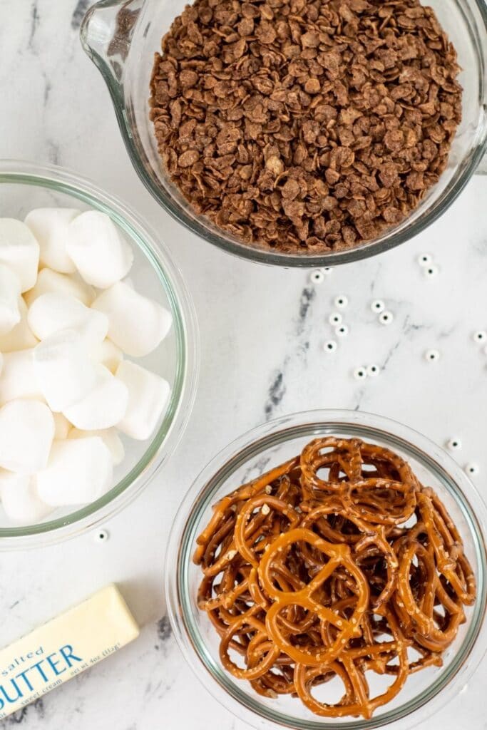 Easy Ingredients – Simple ingredients to make these spider Rice Krispies Treats are easy to make. Head to your store and grab the supplies to make these.